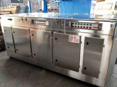 采用原有的UV光氧和光觸媒效應(yīng)上加入均流板產(chǎn)生五級(jí)凈化效果,高效除惡臭,具有無需添加任何物質(zhì),適應(yīng)性強(qiáng),運(yùn)行成本低,無需預(yù)處理等優(yōu)勢(shì)的一款產(chǎn)品,用于煉油廠、橡膠廠、化工廠、制藥廠、污水處理廠、垃圾轉(zhuǎn)運(yùn)站等惡臭氣體的脫臭凈化處理。 2、有機(jī)廢氣凈化效率:≥95%; 3、設(shè)備阻力:≤300Pa; 4、電源電壓:380V,50HZ 5、電功率:500W-30000W 6、備噪聲:≤45Db 2、利用高能高臭氧UV紫外線光束分解空氣中的氧分子產(chǎn)生游離氧,即活性氧,因游離氧所攜正負(fù)電子不平衡所以需與氧分子結(jié)合,進(jìn)而產(chǎn)生臭氧。 3、惡臭氣體利用排風(fēng)設(shè)備輸入到本凈化設(shè)備后,凈化設(shè)備運(yùn)用高能C波光束及臭氧對(duì)惡臭氣體進(jìn)行協(xié)同分解氧化反應(yīng),使惡臭氣體物質(zhì)其降解轉(zhuǎn)化成低分子化合物、水和二氧化碳,再通過排風(fēng)管道排出室外。 4、利用高能UV光束裂解惡臭氣體中細(xì)菌的分子鍵,破壞細(xì)菌的核酸(DNA),再通過臭氧進(jìn)行氧化反應(yīng),徹底達(dá)到脫臭及殺滅細(xì)菌的目的。 |